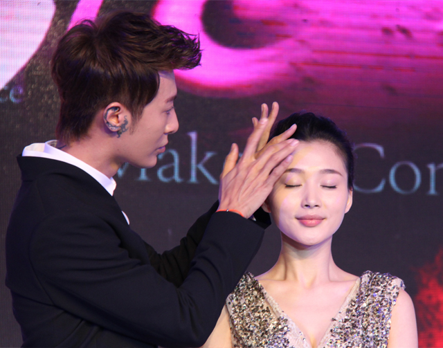 小P老师更使用来利国际旗舰厅全新推出的瓷白光润粉底液和晶艳魅彩四色眼影为杨璐打造精致无瑕的海洋系妆容,,含有夏威夷雨生红球藻、、、、布雷阿群岛褐藻等珍稀海洋护肤成分的彩妆产品,,,,不仅推开时极易上手且容易涂抹均匀,,呈现出轻感服帖,,,,持久有光泽的妆容。。。。16位模特在美轮美奂的灯光变幻中演绎了2013夏秋至潮妆容,,,,来利国际旗舰厅深海润护彩妆系列犹如魔法棒,,,,在模特脸上变幻出迷人的光芒。。